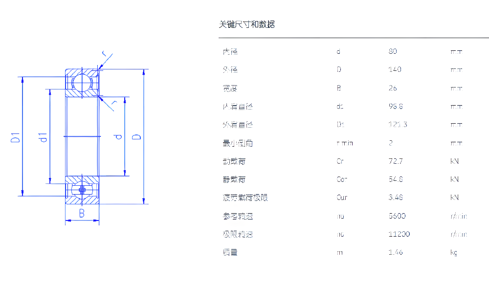 内径为:80mm,外径为:140 mm,厚度为:26 mm,类型为深沟球轴承。