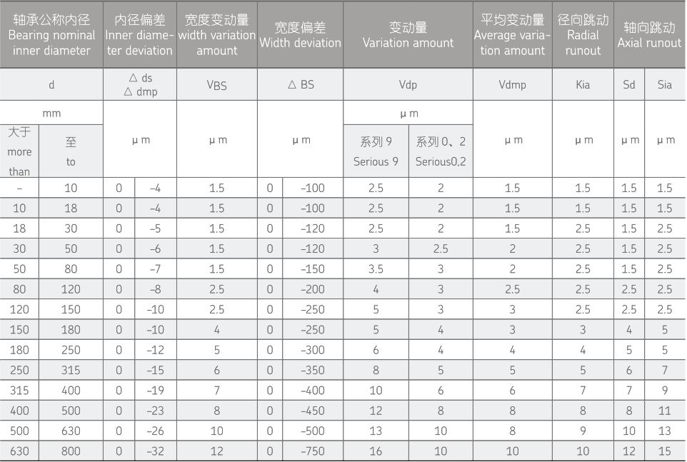 轴承内径 P4S-K5 公差