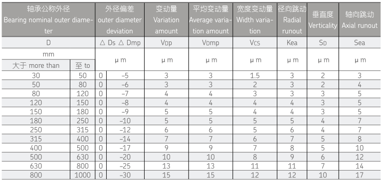 公差等级 SP 单列圆柱滚子轴承外径公差