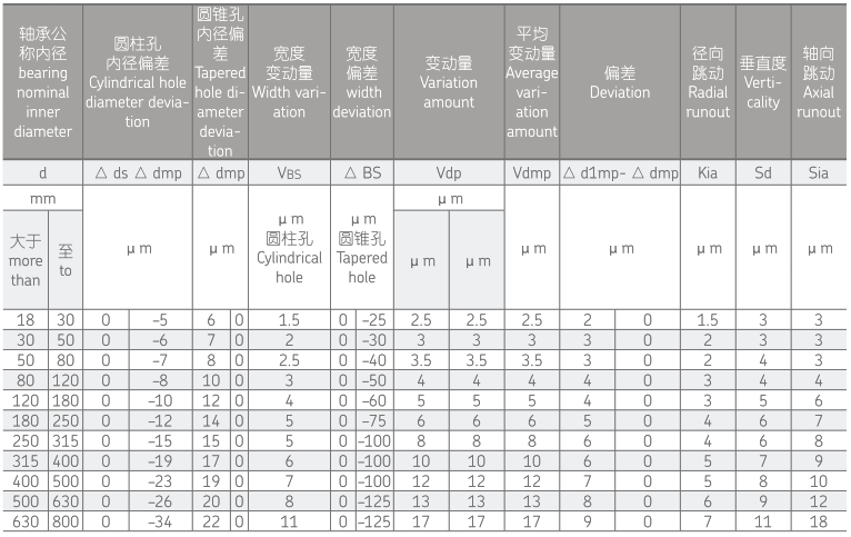 公差等级 SP 双列圆柱滚子轴承内径公差